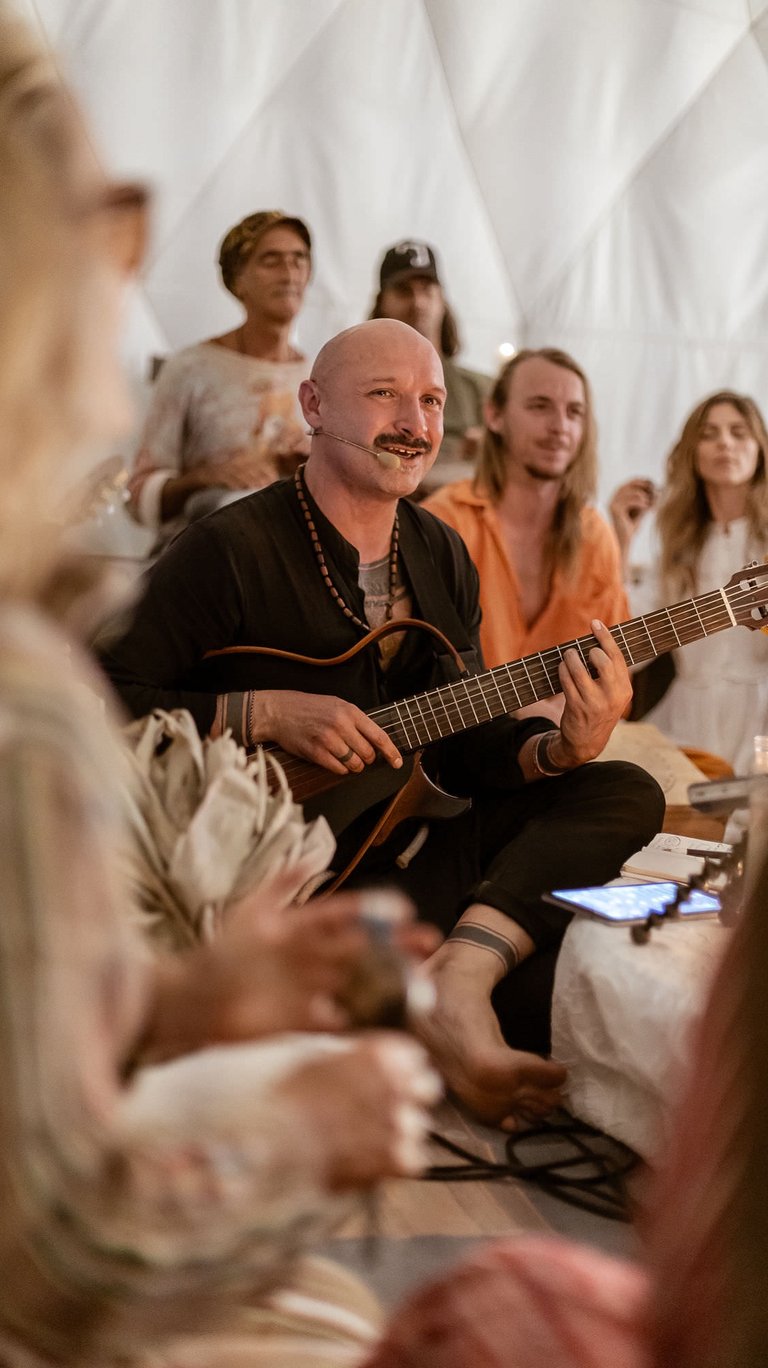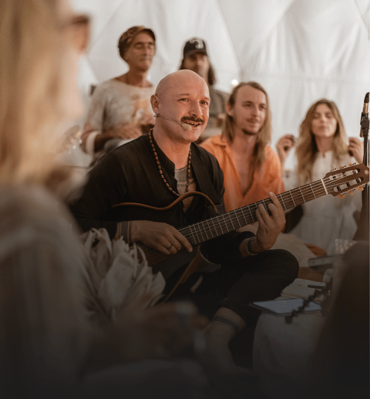 At the heart of his work, music functions as a psychomagical medium for self-discovery and transformation. Through voice, movement, and musical play, people rehearse new ways of being - nourishing the soul, navigating complexity, and finding their place in a greater whole. Jurgis works in corporate settings, circles, retreats, and small groups with those who believe that music is an ecstatic discipline and a powerful tool for human transformation.