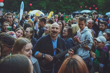 Jurgis Didžiulis (Jurgis Did) is living proof that music can do far more than entertain. A Transformational Troubadour, Corporate Edutainer, and Community Catalyst, he works at the intersection of music, organizational culture, leadership development, and community building. For more than two decades, his work has explored how sound, story, and collective experience can unite people, shape identity, and transform how groups relate, collaborate, and perform.