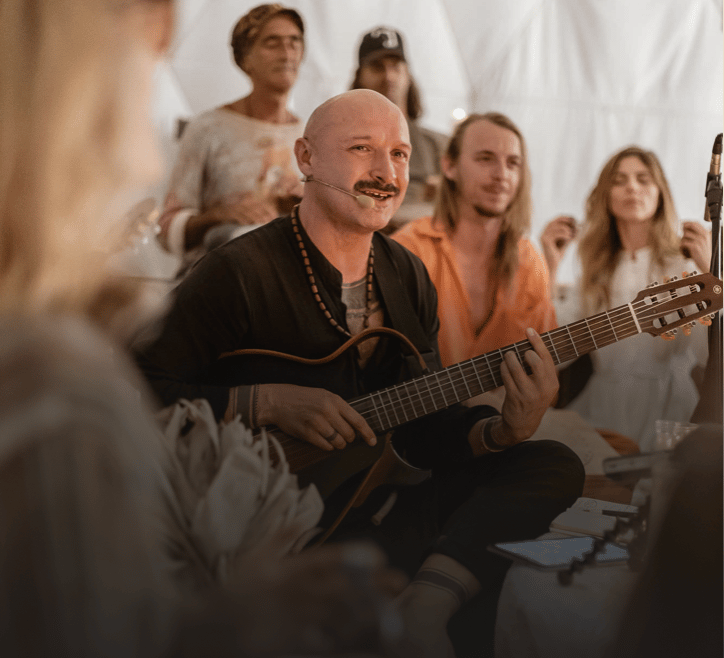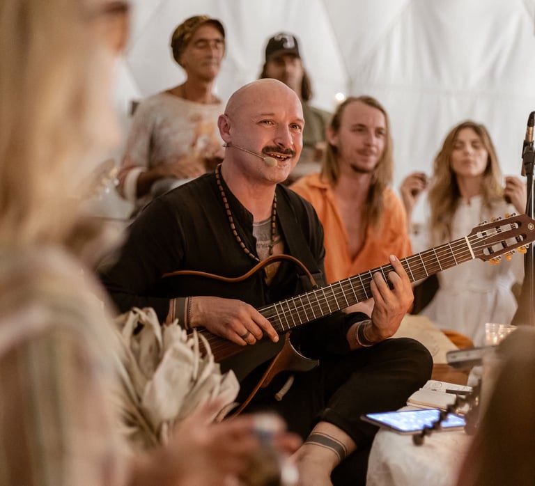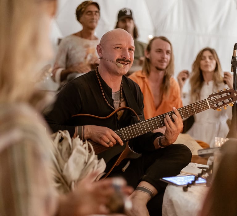 At the heart of his work, music functions as a psychomagical medium for self-discovery and transformation. Through voice, movement, and musical play, people rehearse new ways of being - nourishing the soul, navigating complexity, and finding their place in a greater whole. Jurgis works in corporate settings, circles, retreats, and small groups with those who believe that music is an ecstatic discipline and a powerful tool for human transformation.