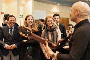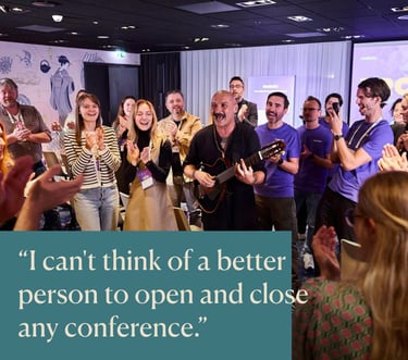 As a Troubadour, Jurgis Didziulis seamlessly mixes speaking with live, participatory music. His sessions don’t merely deliver messages - they create a memorable moment of shared experience, where audiences become trust, alignment, and community in real time.