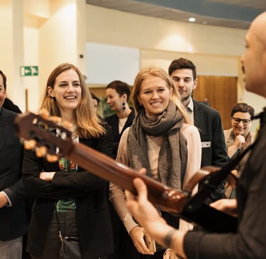 For well over a decade, he has used music in professional engagements to create an uplifting vibe, but also to experientially illustrate collective dynamics at play in any organisation - from horizontal leadership and embodied values, to organic governance and culture as a human operating system.